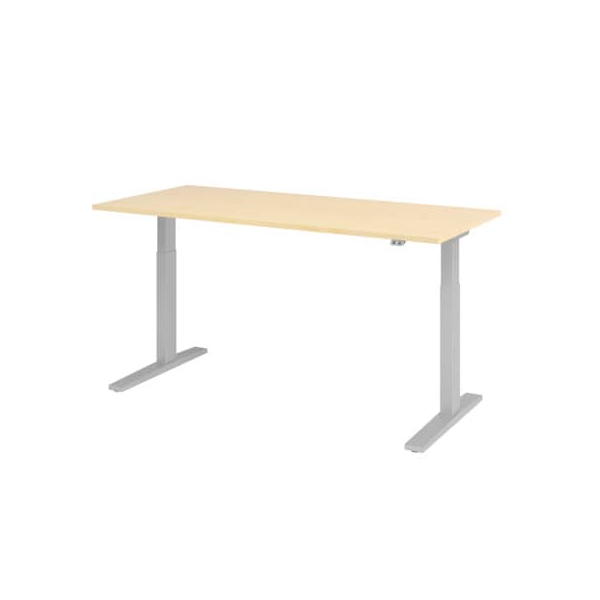 Hammerbacher Sitz-Steh-Schreibtisch XMKA, elektrisch höhenverstellbar, 70-120cm (H), 180x80cm (BxT), rechteckig, ahorn / silber