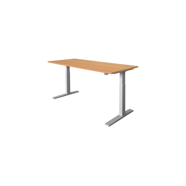 Hammerbacher Sitz-Steh-Schreibtisch XMKA, elektrisch höhenverstellbar, 70-120cm (H), 180x80cm (BxT), rechteckig, buche / silber
