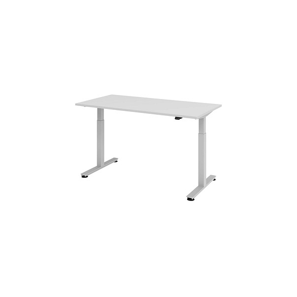 Hammerbacher Sitz-Steh-Schreibtisch XMST, elektrisch höhenverstellbar, 71-120cm (H), 160x80cm (BxT), rechteckig, grau / silber
