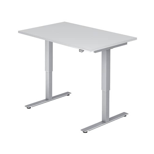 Hammerbacher Sitz-Steh-Schreibtisch XMST, elektrisch höhenverstellbar, 73-119cm (H), 120x80cm (BxT), rechteckig, weiß / silber