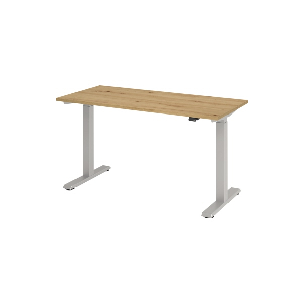 Hammerbacher Sitz-Steh-Schreibtisch XMST Mini, elektrisch höhenverstellbar, 71-120cm (H), 140x67cm (BxT), rechteckig, asteiche / silber