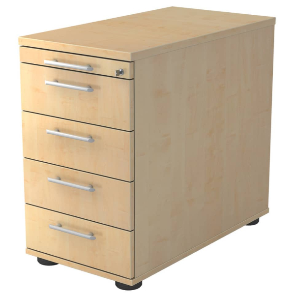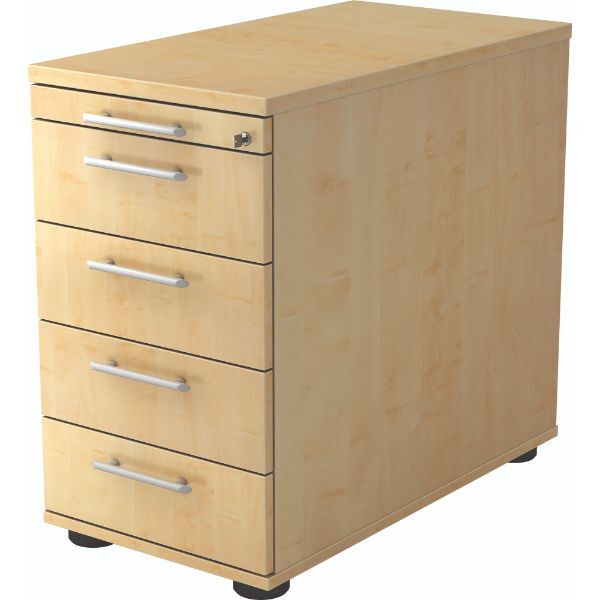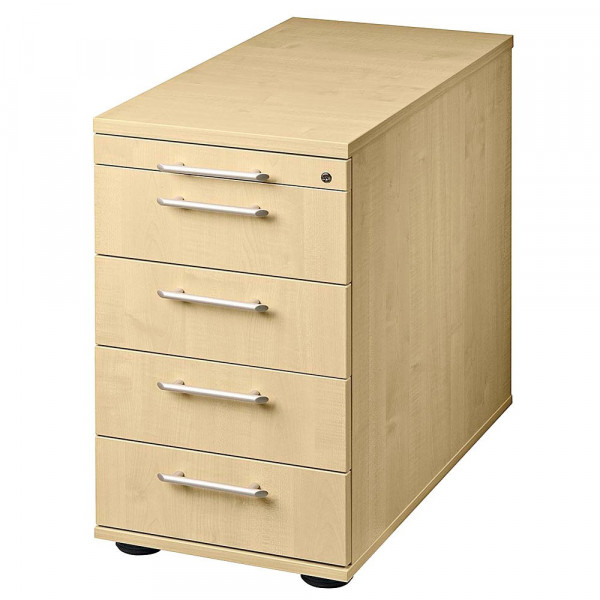 Hammerbacher Standcontainer Solid VSC50/3 Holz ahorn, 4 normale Schubladen, mit extra Utensilienauszug, abschließbar