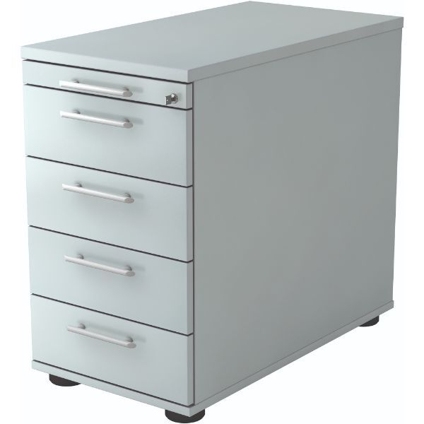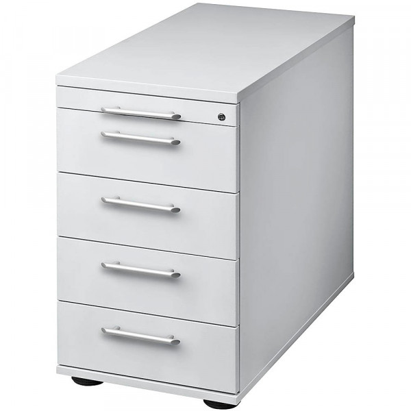 Hammerbacher Standcontainer Solid VSC50/5 Holz lichtgrau, 4 normale Schubladen, mit extra Utensilienauszug, abschließbar