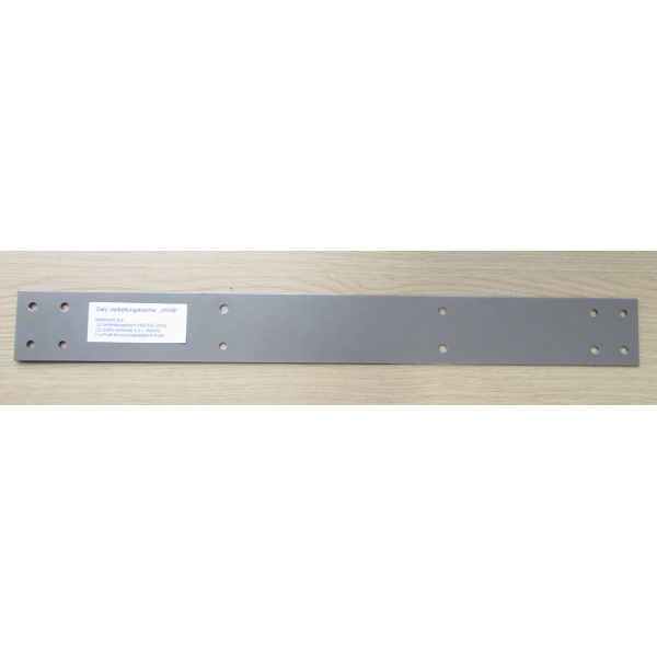 Das Set besteht aus zwei langen Verbindsblechen sowie dem benötigten Befestigungsmaterial, und wird im zerlegten Zustand geliefert, was eine einfache Montage gewährleistet.
