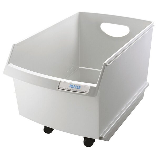 Der Papierkorb ist nicht nur funktional, sondern auch benutzerfreundlich. Dank der praktischen Griffmulden ist ein einfaches Tragen und Transportieren gewährleistet. Darüber hinaus ist er stapelbar und bietet ein Beschriftungsfeld mit vorgedruckten Beschriftungsetiketten, was die Zuordnung von Abfallarten erleichtert. Das hochwertige Material, Polystyrol (PS), sorgt für Langlebigkeit und Stabilität.