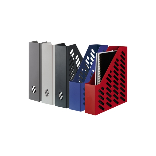 Die extra hohe Vorderseite hält Dokumente sicher an ihrem Platz, während das seitliche Raster einen praktischen Einblick auf Kataloge, Prospekte, Zeitschriften und vieles mehr ermöglicht. Mit einem praktischen Griffloch im Rückenteil gestaltet sich die Entnahme der Unterlagen besonders einfach. Außerdem bietet der Stehsammler Platz für ein Rückenschild, das Sie im 8er Set unter der Art.-Nr. 94100 nachbestellen können.