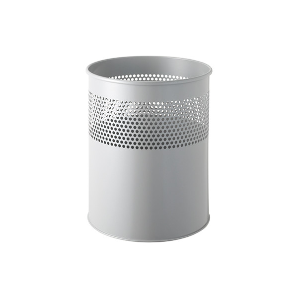 Helit Papierkorb the dot H2515787, 15 Liter, rund, grau Lochdekor