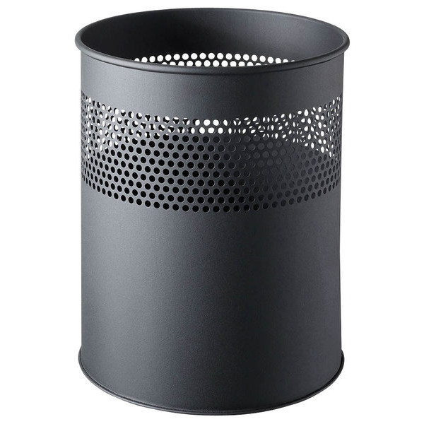 Helit Papierkorb the dot H2515795, 15 Liter, rund, schwarz Lochdekor