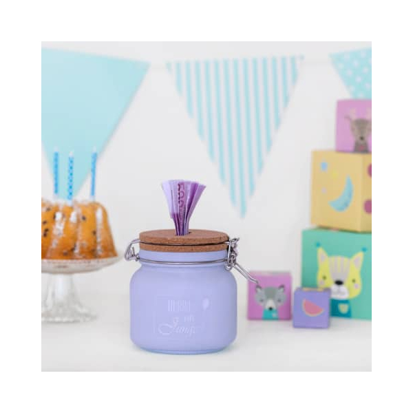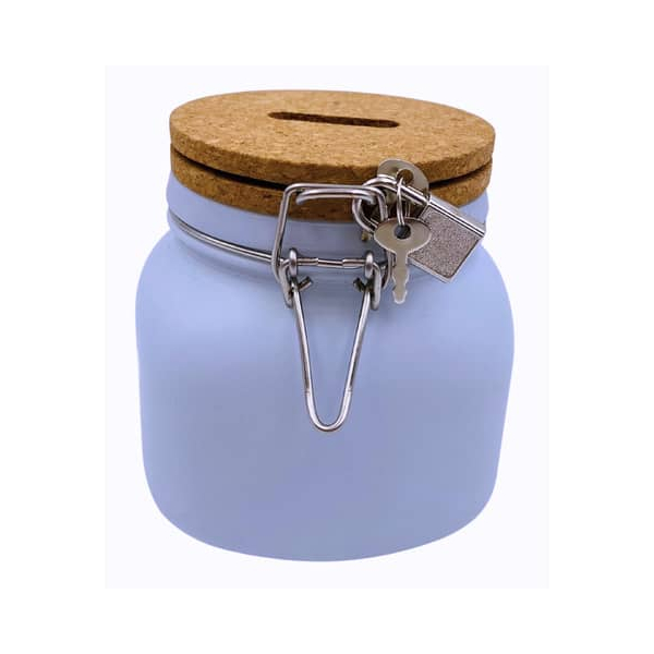 Das erste Sparglas im Leben soll Wünsche und Träume erfüllen. Mit einem Schlüssel und einem Schloss sind Ihre Ersparnisse stets sicher verwahrt. Hergestellt aus hochwertigem Glas und Kork, bietet diese Spardose nicht nur Funktionalität, sondern auch eine ansprechende Optik.