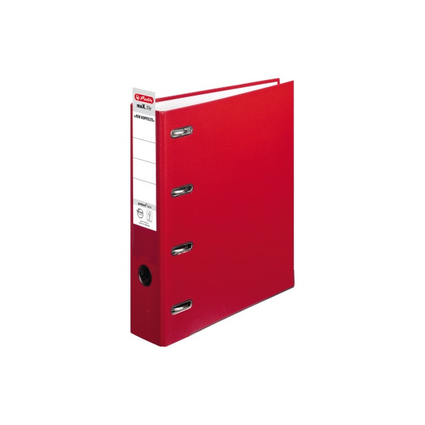 Entdecken Sie den **Doppelordner** maX.file protect twin von Herlitz – die ideale Lösung für Ihre Dokumentenorganisation. Mit einem modernen, vollfarbigen roten PP-Kunststoffbezug versehen, vereint dieser Ordner Funktionalität und ansprechendes Design.