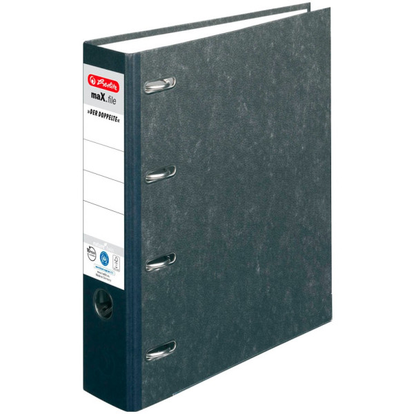 Herlitz S70 5190806 Doppelordner • für Kontoauszüge • Format: 2xA5 quer • Farbe: schwarz marmoriert • Rückenbreite: 70mm breit für 2x400 Blatt • Material: Karton • Zertifikat: Blauer Engel, FSC • Ringmechanik: 2x Qualitätshebelmechanik • mit Griffloch • mit Kantenschutz