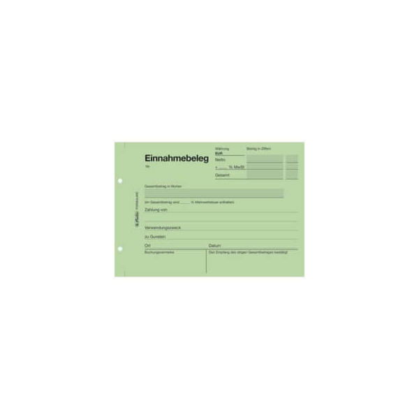Die Einnahmebelege haben eine Höhe von 5mm und eine Breite von 147mm. Sie eignen sich für das Papierformat A5 und sind ideal für die Handbeschriftung. Das holzfreie Papier in grün ist durch eine Microperforation leicht abtrennbar.