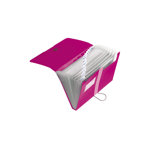 Die Fächermappe in einem ansprechenden beerenfarbenen Design ist nicht nur funktional, sondern auch optisch ansprechend. Sie verfügt über beschriftbare Taben und 24 Beschriftungsschilder, sodass Sie Ihre Dokumente jederzeit schnell und einfach finden können. Der runde Gummizug mit Verschlussknopf sorgt dafür, dass Ihre Unterlagen sicher verstaut sind.