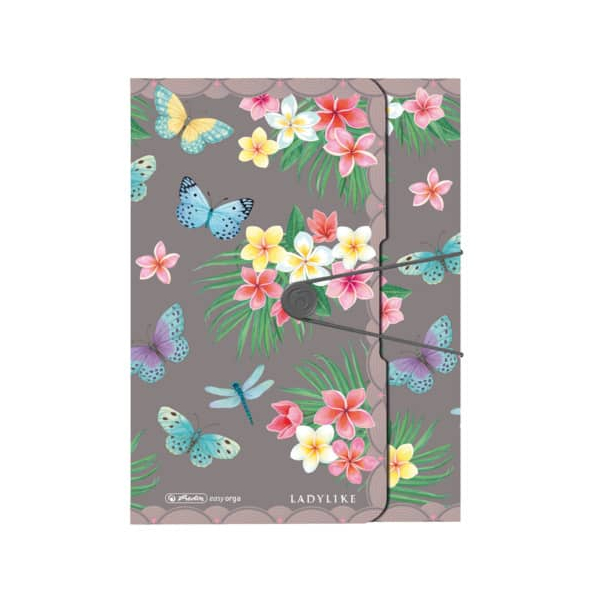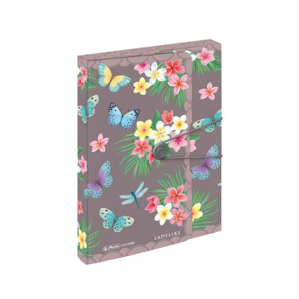 Herlitz Ladylike 50044092 Heftbox • Format: DIN A4 • Farbe: Motiv Butterflies • Füllhöhe: 4cm • Verschlussart: 1 Gummizug (mittig) • Material: Polypropylen • 1 x Loseblatt-Ablage • Rückenschild: Rückenschild