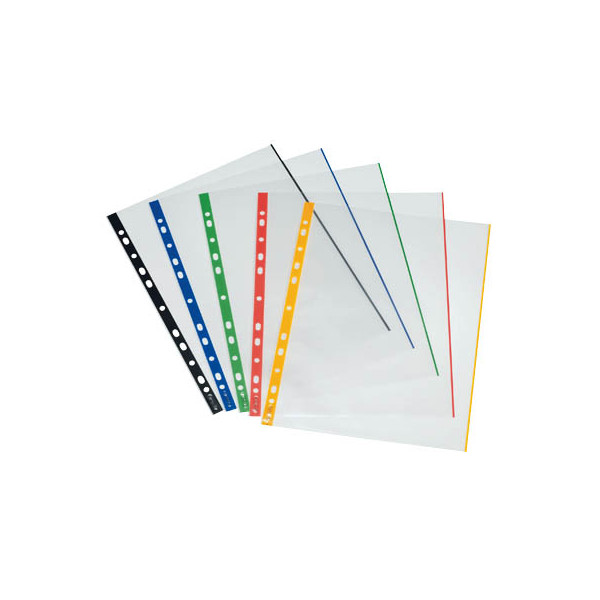 Herlitz Prospekthüllen 10914414 Rand und Verstärkungsstreifen farbig, dokumentenecht, mit Lochrandverstärkung, A4 glasklar glatt, oben offen, 0,07mm