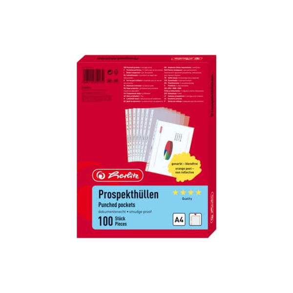 Herlitz Prospekthüllen Premium 10840320, A4 transluzent genarbt, oben offen, 0,085mm