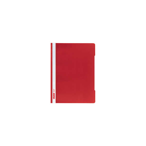 Herlitz Quality 11317138 Schnellhefter • Format: DIN A4 • Farbe: rot • Vorderdeckel: transparent (= Sichthefter) • Einsteckstreifen • Material: Polypropylen • Heftung: 1 x kaufmännische Heftung • Fassungsvermögen ca.: 80 Blatt