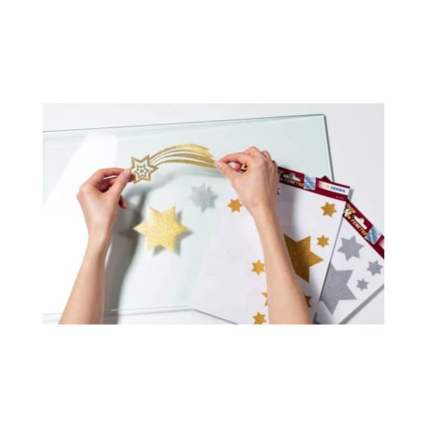 Bestellen Sie jetzt die 15644 Fensterbilder Sterne gold von Herma und verwandeln Sie Ihr Zuhause in eine festliche Weihnachtsoase!
