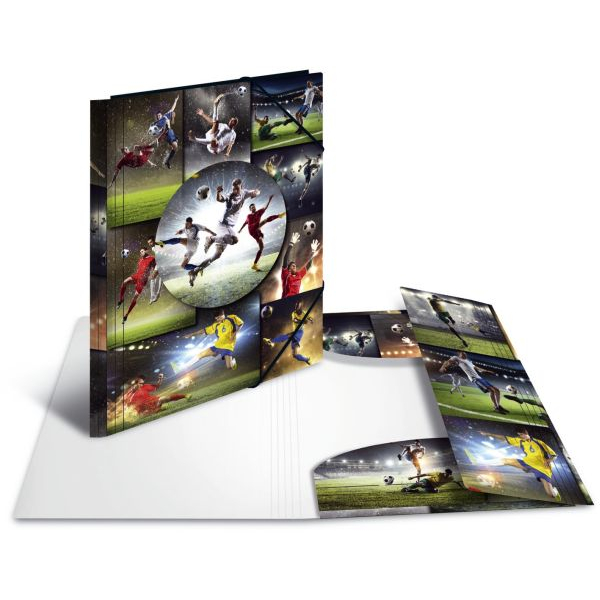 Entdecken Sie die Eckspannmappe von Herma, Modell 19188. Diese Sammelmappe A3 PP mit einem sportlichen Fußball-Motiv vereint Funktionalität und ansprechendes Design. Sie eignet sich hervorragend zur Aufbewahrung von losem Schriftgut und bringt Ordnung in Ihre Unterlagen.