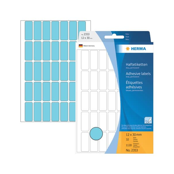 Herma Etiketten 2353, blau, 12x30mm, rechteckig
