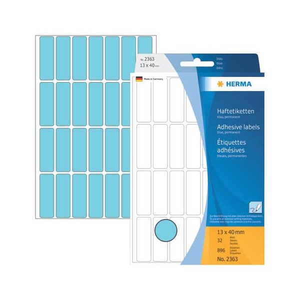 Herma Etiketten 2363, blau, 13x40mm, rechteckig