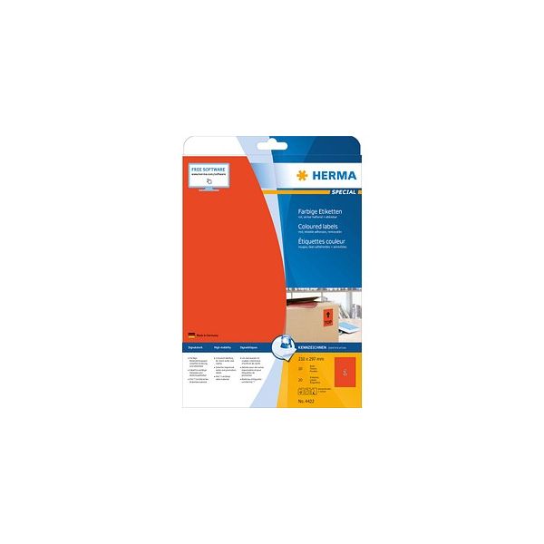 Herma Etiketten Special 4422, rot, 210x297mm, rechteckig