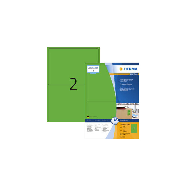 Herma Special 4569 farbige Etiketten in grün. • Trägermaterial: Papier • A4 Bogen • Klebung: permanent