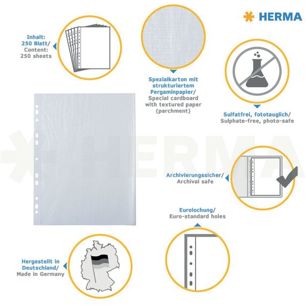 Entdecken Sie den hochwertigen Fotokarton Fotophan von Herma, der sich perfekt für die Aufbewahrung Ihrer persönlichen Erinnerungen eignet. Mit einem Format von A4 (230 x 297 mm) und einem stabilen Gewicht von 220 g/m² ist dieser Fotokarton ideal, um Fotos, Bilder und mehr langfristig und sicher aufzubewahren.