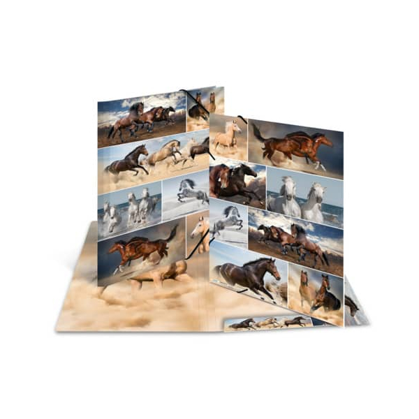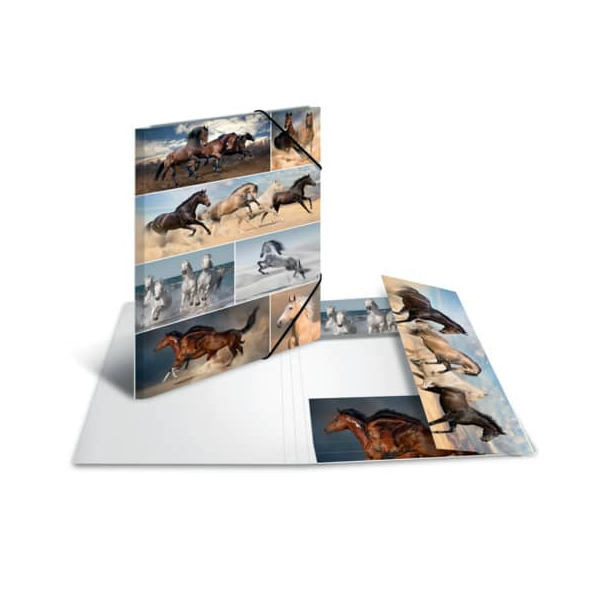 Herma Gummizugmappe 19217, A3 Pferde Karton, mit 3 Einschlagklappen