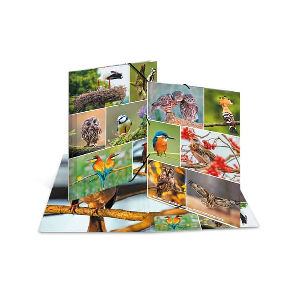Herma Gummizugmappe 19345, A4 Motiv Heimatvögel Karton, mit 3 Einschlagklappen