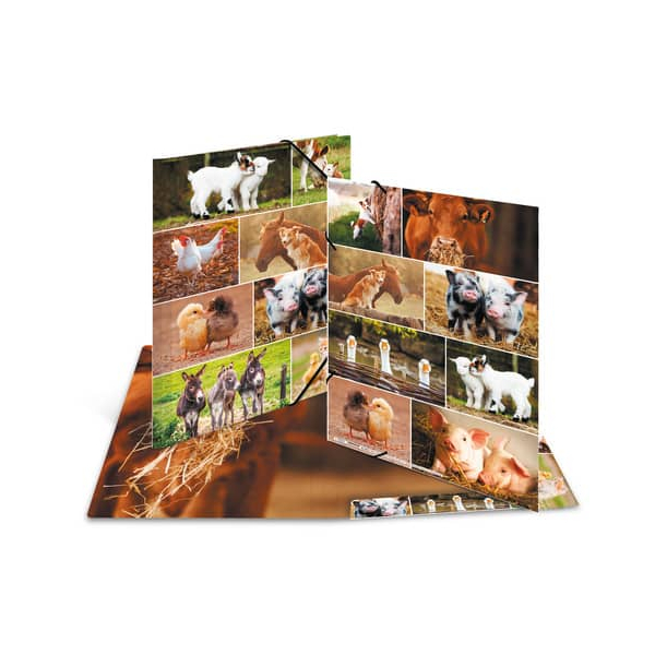 Herma Gummizugmappe 19454, A3 Motiv Bauernhoftiere Karton, mit 3 Einschlagklappen