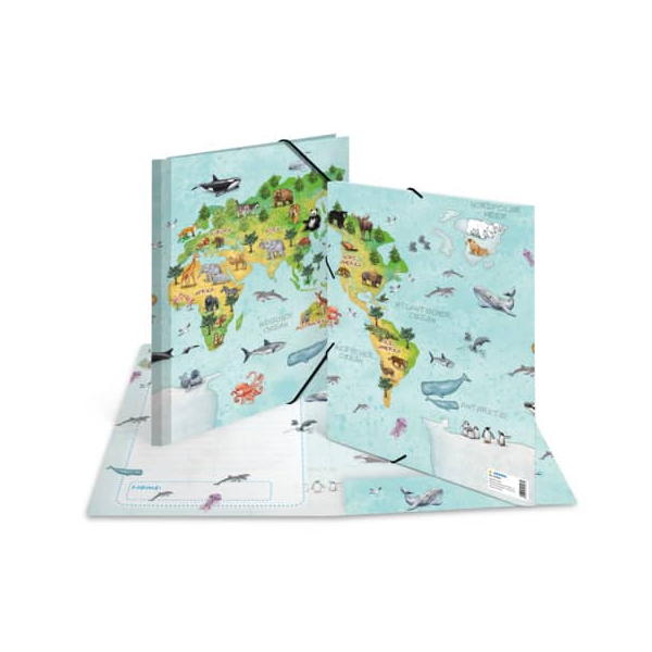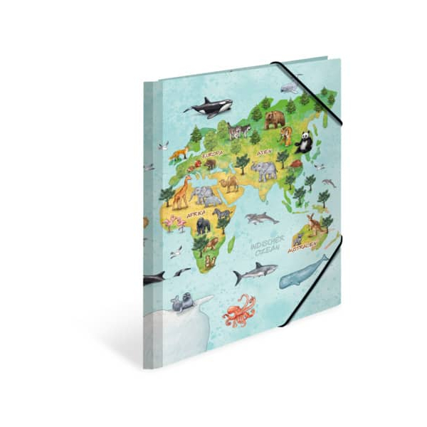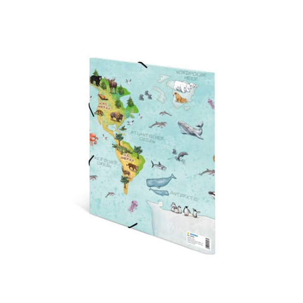 Herma Gummizugmappe 19593, A4 Motiv Weltkarte Karton, mit 3 Einschlagklappen