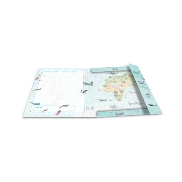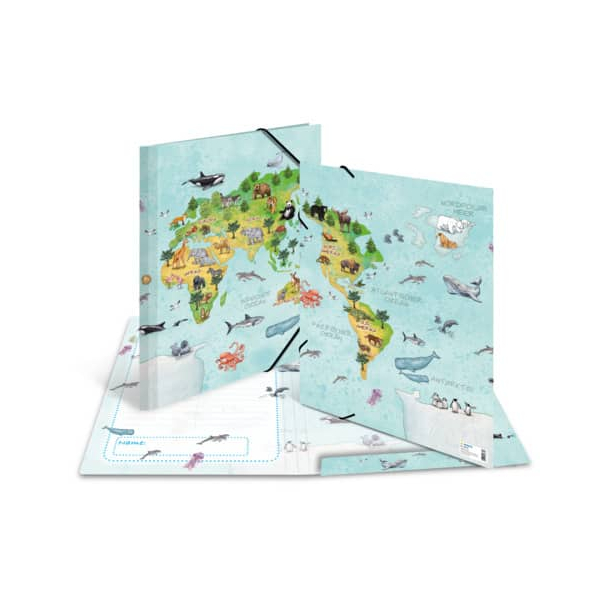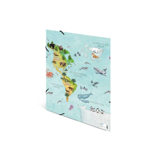 Herma Gummizugmappe 19634, A3 Motiv Weltkarte Karton, mit 3 Einschlagklappen