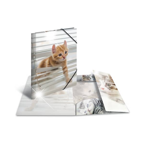 Herma Gummizugmappe Sammelmappe A3 PP 19337, A3 Motiv Katzen Polypropylen, mit 3 Einschlagklappen