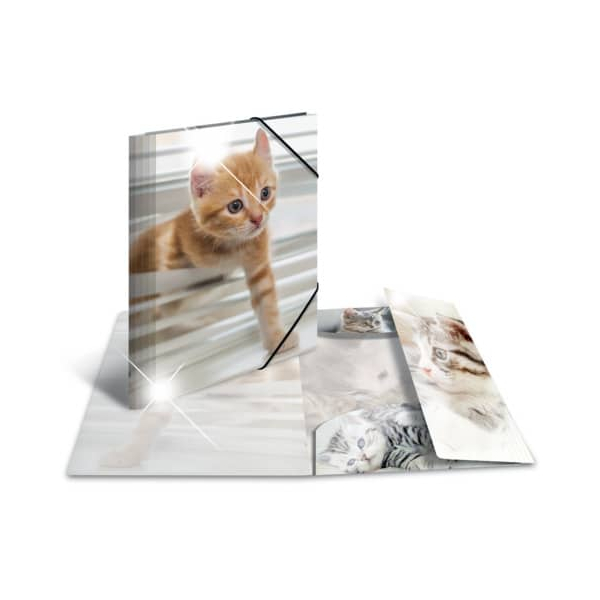 Herma Gummizugmappe Sammelmappe A4 PP 19328, A4 Motiv Katzen Polypropylen, mit 3 Einschlagklappen