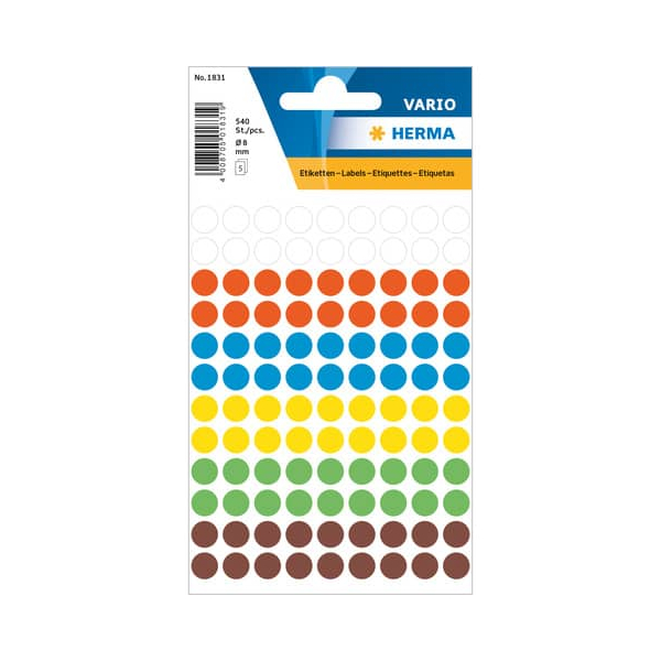Herma Markierungspunkte Vario 1831, farbig sortiert, Ø 8mm