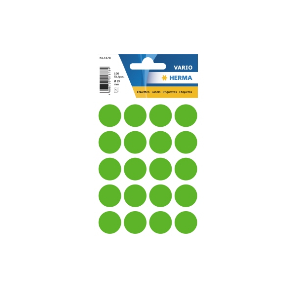 Herma Markierungspunkte Vario 1876, leuchtrot, Ø 19mm | Herma Markierungspunkte Vario 1871, gelb, Ø 19mm | Herma Markierungspunkte Vario 1875, grün, Ø 19mm | Herma Markierungspunkte Vario 1872, rot, Ø 19mm | Herma Markierungspunkte Vario 1879, schwarz, Ø 19mm | Herma Markierungspunkte Vario 1883, dunkelblau, Ø 19mm | Herma Markierungspunkte Vario 1886, pink, Ø 19mm | Herma Markierungspunkte Vario 1874, leuchtorange, Ø 19mm | Herma Markierungspunkte Vario 1870, weiß, Ø 19mm | Herma Markierungspunkte Vario 1873, blau, Ø 19mm |