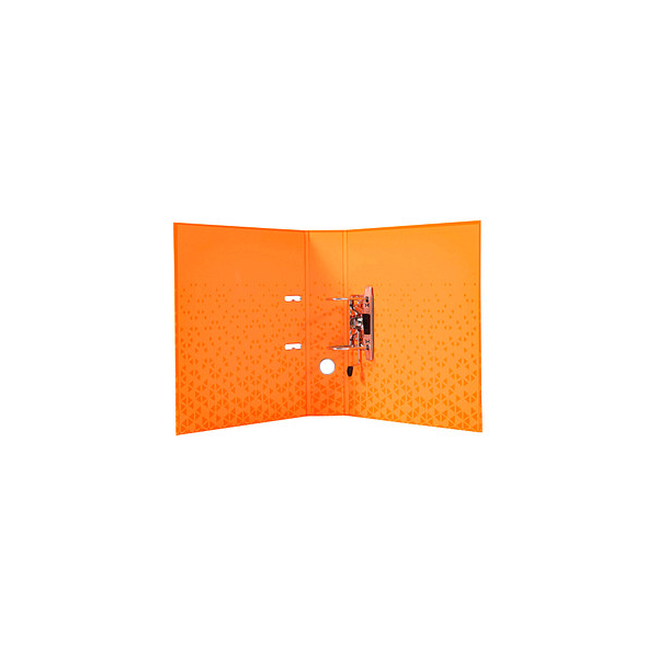Die durchdachte Hebelmechanik ermöglicht ein einfaches und schnelles Abheften von Dokumenten. Mit dem Format DIN A4 eignet sich dieser Ordner perfekt für alle gängigen Unterlagen. Der orangefarbene Look wird durch die vollfarbige, 2/3 gemusterte Oberfläche ergänzt, die Ihrem Büro eine frische Note verleiht.