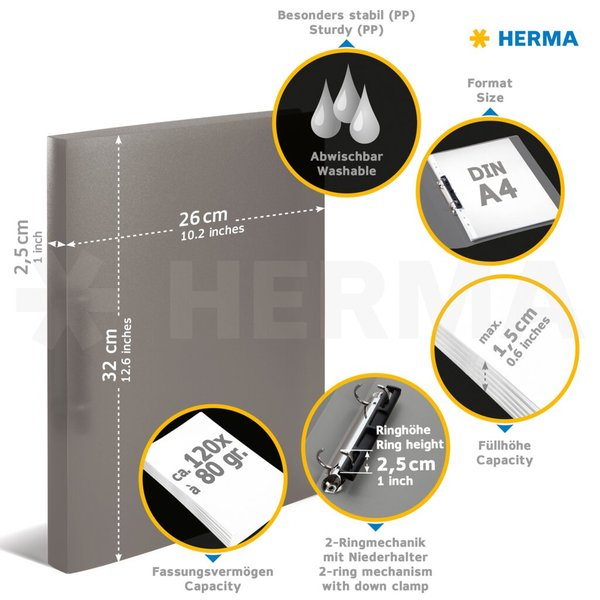 Herma Ringbuch 19184, A4 2 Ringe 25mm Ring-Ø Polypropylen (PP) grau-transparent