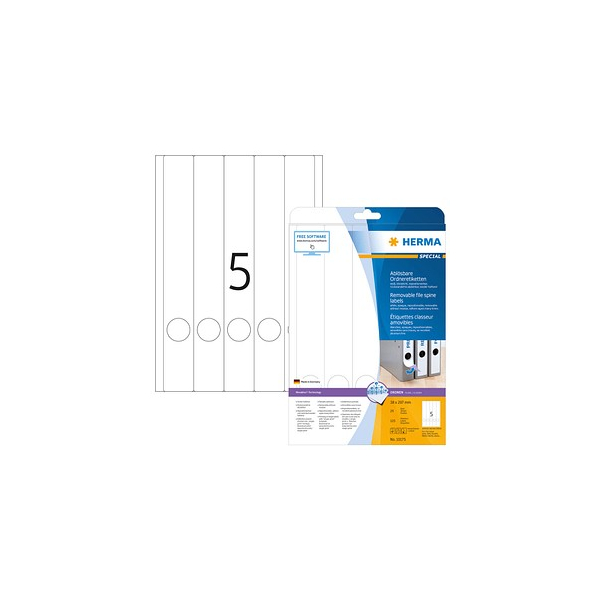 Herma Rückenschilder Special 5130, weiß, schmal/lang, 38x297mm, selbstklebend, permanent | Herma Rückenschilder Special 4830, weiß, schmal/lang, 38x297mm, selbstklebend, permanent | Herma Rückenschilder Movables 10185, weiß, breit/lang, 61x297mm, selbstklebend, wiederablösbar | Alpha label Rückenschilder 1060WE, weiß, schmal/lang, 39x285mm, selbstklebend | Herma Rückenschilder Movables 10155, weiß, schmal/kurz, 38x192mm, selbstklebend, wiederablösbar | Herma Rückenschilder Special 5133, blau, schmal/lang, 38x297mm, selbstklebend, permanent | Herma Rückenschilder Special 5131, gelb, schmal/lang, 38x297mm, selbstklebend, permanent | Herma Rückenschilder Movables 10180, weiß, breit/lang, 59x297mm, selbstklebend, wiederablösbar | Herma Rückenschilder Movables 10160, weiß, breit/kurz, 59x192mm, selbstklebend, wiederablösbar | Herma Rückenschilder Movables 10150, weiß, schmal/kurz, 34x192mm, selbstklebend, wiederablösbar |