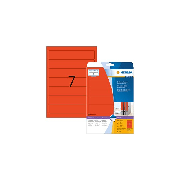 Herma Rückenschilder Special 5092, rot, schmal/kurz, 38x192mm, selbstklebend, permanent