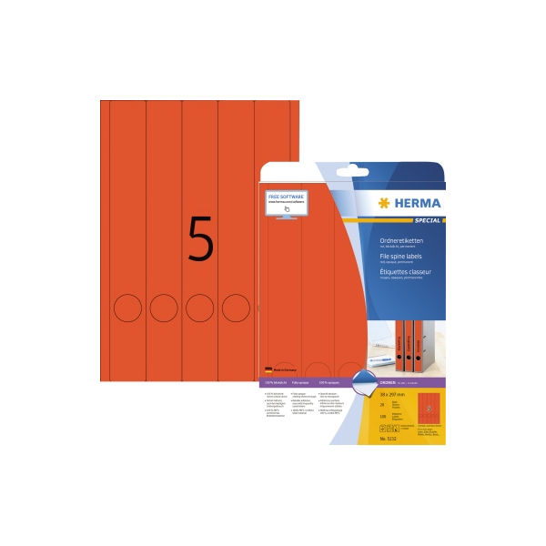 Herma Rückenschilder Special 5132, rot, schmal/lang, 38x297mm, selbstklebend, permanent