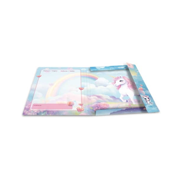 Entdecken Sie die farbenfrohe Sammelmappe 20138 von Herma, die mit ihrem zauberhaften "Happy Unicorns"-Design nicht nur Ihre Dokumente sicher aufbewahrt, sondern auch einen Hauch von Magie auf Ihren Schreibtisch bringt. Diese hochwertige Sammelmappe eignet sich perfekt für das Format DIN A3 und bietet Ihnen durch die Verarbeitung aus stabilem Karton eine optimale Aufbewahrungslösung.