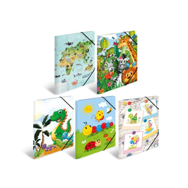 Entdecken Sie die farbenfrohe Sammelmappe der Serie Kindergarten von Herma! Mit der Artikelnummer 19108 erhalten Sie ein Sortiment von 10 Sammelmappen, die mit fünf verschiedenen, tollen Motiven versehen sind. Jede Mappe verfügt über drei Innenklappen, bedruckte Innenseiten und hochwertige Gummieckspanner, die einen sicheren Halt für Ihre Unterlagen bieten.