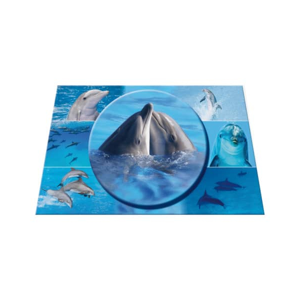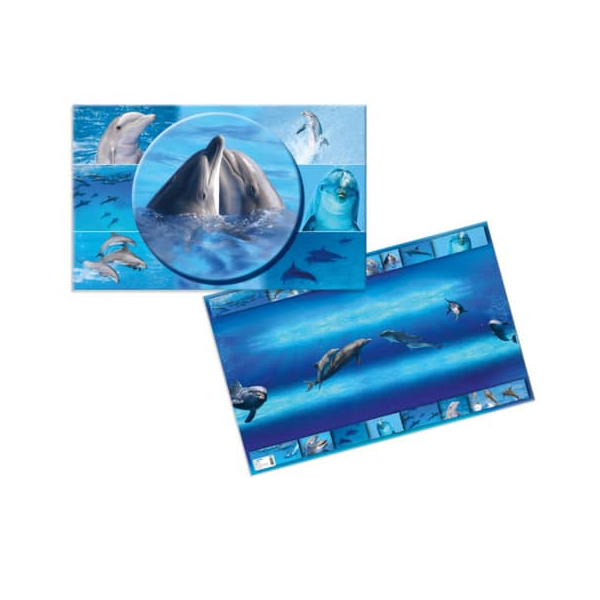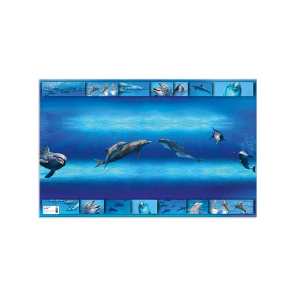Die stabile Schreibunterlage von Herma besteht aus Karton und ist bei Jungen und Mädchen gleichermaßen beliebt. Das Motiv Delfine in wunderschönen Blautönen begeistert die kleinen und die großen Kinder. Kinderleicht lernen die Kids Schreiben, Malen und Zeichnen, da der Untergrund rutschfest und angenehm weich ist. Die Unterlage sieht nicht nur toll aus, sie lässt sich auch gut reinigen und schont jede Arbeitsfläche. Super süße Delfine lächeln einem schelmisch entgegen. Sie sind besonders freundlich und auch intelligent. Die Schreibunterlage ist ein wahrer Hingucker auf dem Schreibtisch.