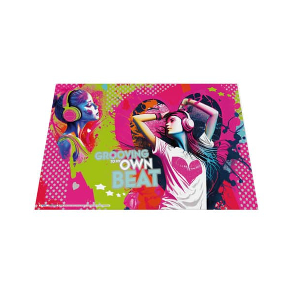 Entdecken Sie die bunte Schreibunterlage 19595 von Herma! Die stabile Unterlage mit dem coolen Music Girl-Motiv ist der Hit bei Kindern und Jugendlichen. Sie sieht nicht nur super aus, sondern lässt sich auch gut reinigen und schont Ihren Schreibtisch. Schreiben, Malen, Kneten, Basteln: Eine saubere Sache!