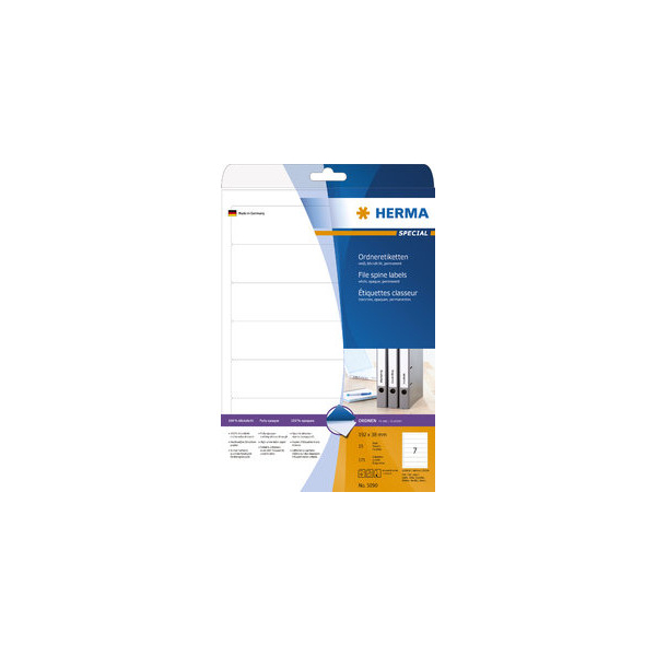 Herma selbstklebende Rückenschilder A4 Etiketten 4283 weiß schmal/kurz 38x192mm (BxH) permanent | Herma selbstklebende Rückenschilder A4 Etiketten 5119 weiß schmal/kurz 25,4x192mm (BxH) permanent | Herma selbstklebende Rückenschilder A4 Etiketten 5094 grün schmal/kurz 38x192mm (BxH) permanent | Herma selbstklebende Rückenschilder INKJET 4825 weiß schmal/kurz 38x192mm (BxH) | Herma selbstklebende Rückenschilder A4 Etiketten 5092 rot schmal/kurz 38x192mm (BxH) permanent | Herma selbstklebende Rückenschilder A4 Etiketten 5160 weiß schmal/kurz 34x192mm (BxH) permanent | Herma selbstklebende Rückenschilder A4 Etiketten 5118 weiß schmal/kurz 16,9x192mm (BxH) | Herma selbstklebende Rückenschilder A4 Etiketten 5091 gelb schmal/kurz 38x192mm (BxH) permanent | Herma selbstklebende Rückenschilder Special 8620 weiß schmal/kurz 38x192mm permanent | Herma selbstklebende Rückenschilder Movables 10155 weiß schmal/kurz 38x192mm (BxH) wiederablösbar |