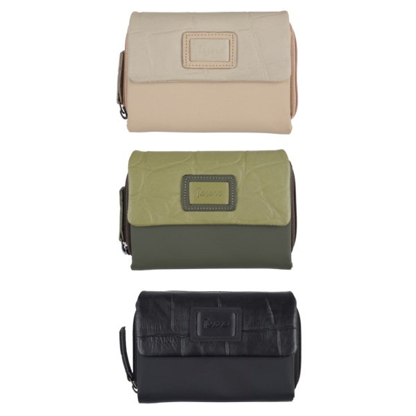 Moderne Reißverschlussbörse mit attraktiver Kroko-Prägung und integriertem RFID-Schutz – für stilvolle Sicherheit im Alltag. Die innovative Materialkombination aus hochwertigem Echtleder und Molene (einem Mix aus Silikon und Nylon) sorgt für eine besondere Haptik und einen coolen Look. Mit durchdachter Innenaufteilung, zahlreichen Steckfächern und praktischem Münzfach. Erhältlich in 3 trendigen Farben (sortiert). Maße: 10 x 14 x 3,5 cm.