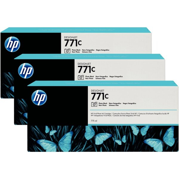 HP Druckerpatrone 771C (B6Y37A), Dreierpack, 3x fotoschwarz
