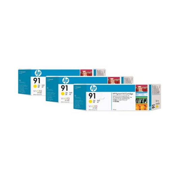 HP Druckerpatrone vivera 91 (C9485A), Dreierpack, 3x gelb